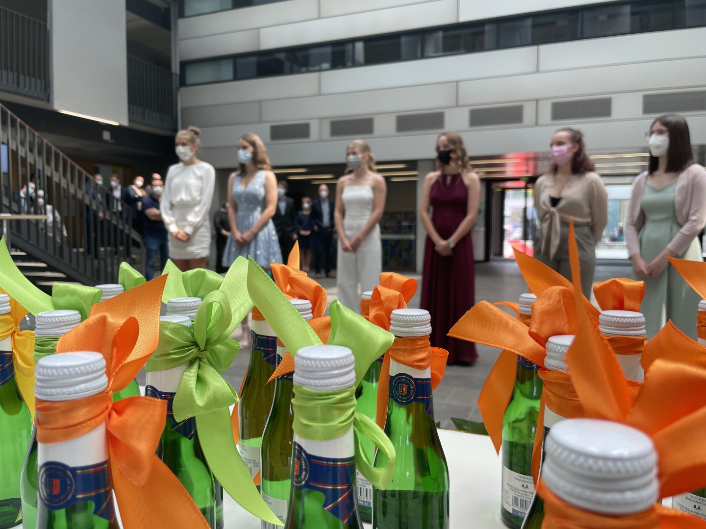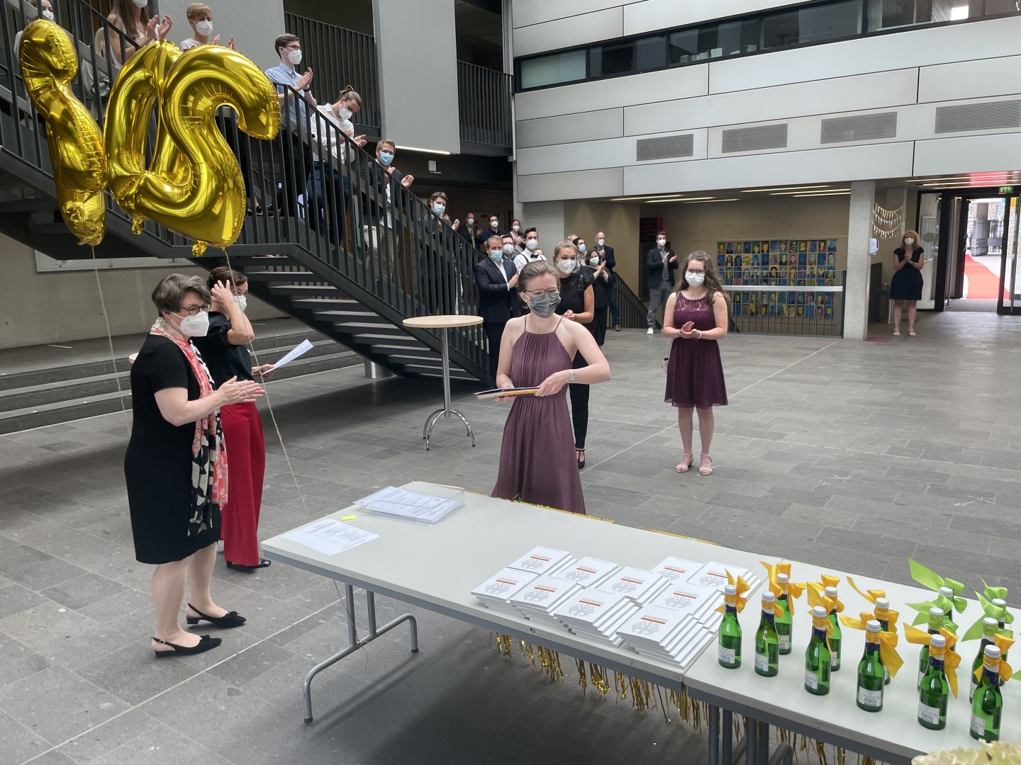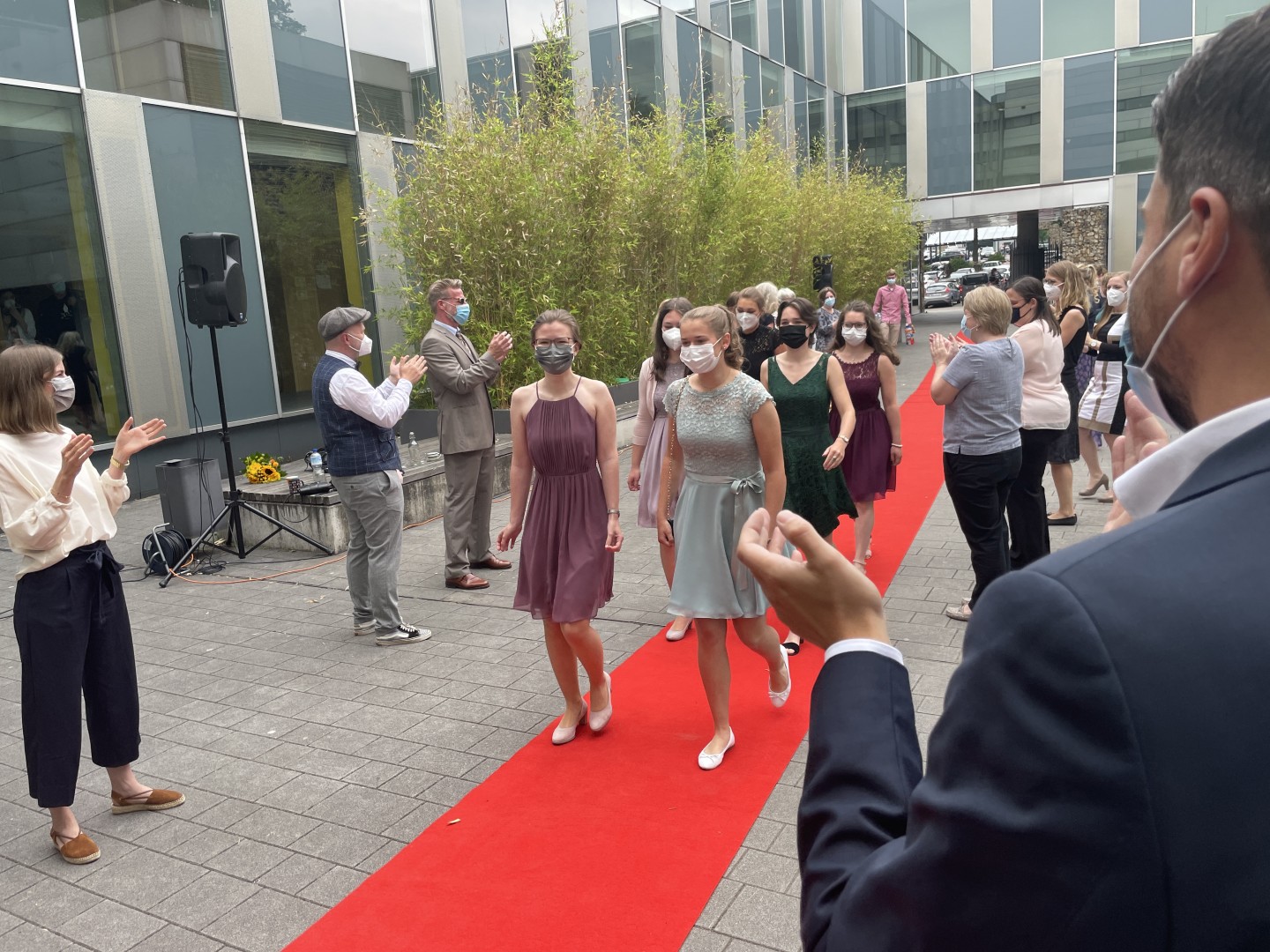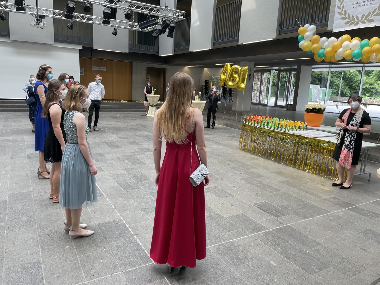 Wie im letzten Jahr wurde auch die Zeugnisvergabe der Abiturientia 2021 in einem Pandemie-konformen Format im Forum unserer Schule abgehalten. In Kleingruppen erhielten die Abiturientinnen und Abiturienten im festlich geschmückten Forum ihre Zeugnisse und wurden mit reichlich Applaus ihrer Familien sowie des gesamten Kollegiums empfangen und begleitet. Diese herzliche Anerkennung haben sie sich auch redlich verdient - nach einem Corona-Jahr voll von besonderen Herausforderungen.