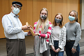 Für unser jahrelanges Engagement im Bereich des fairen Handels und des nachhaltigen und gerechten Konsumverhaltens wurde das Mariengymnasium mit dem Fairtrade-Award ausgezeichnet. Hierfür kam extra der Kabarettist Uwe Lyko alias Herbert Knebel zu uns und überreichte den Preis.