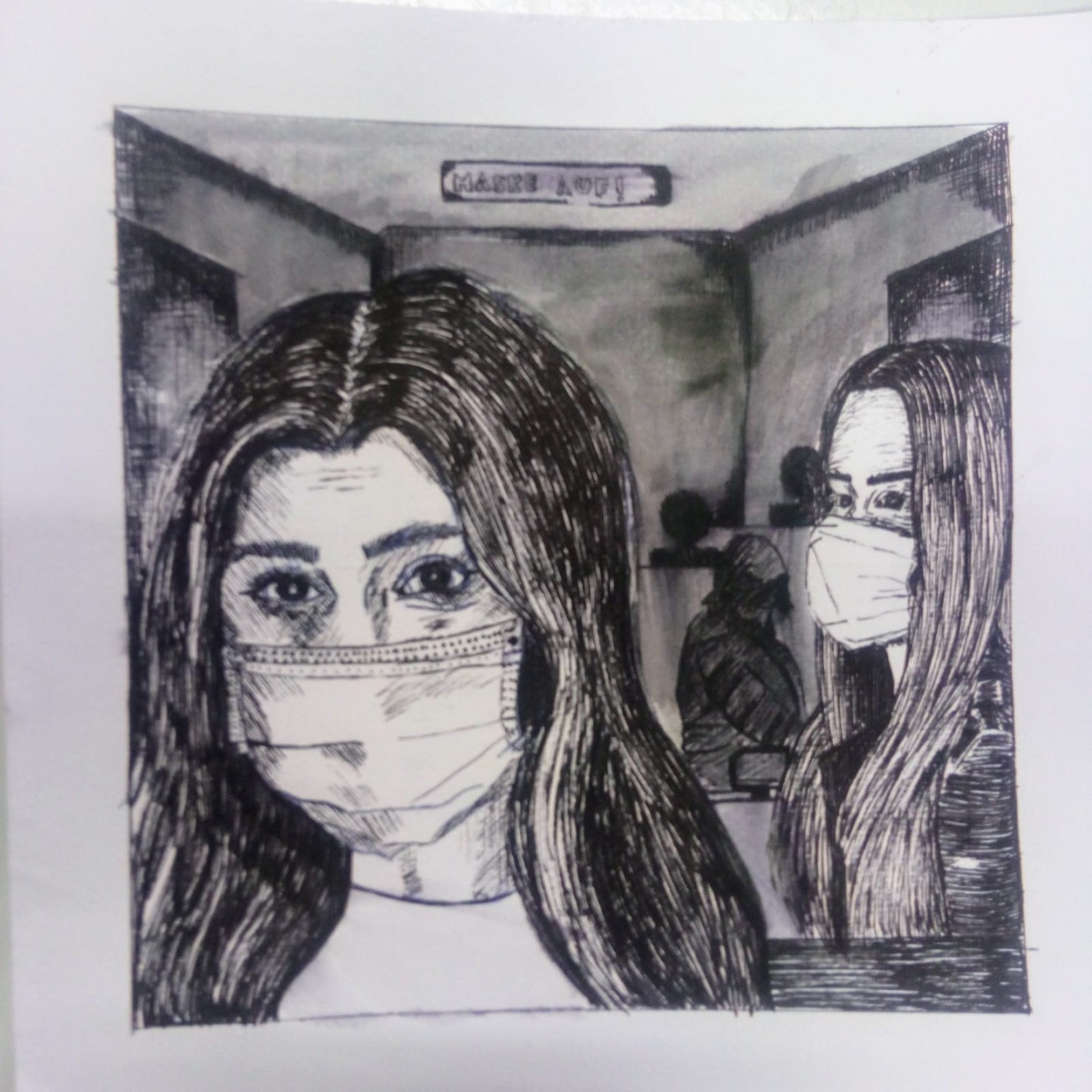 Wiermal ein starkes Zeitzeichen aus der Kunst. Die Schülerinnen und Schüler des leistungskurses Kunst von Frau Seppelfricke hatten die Aufgabe, welche gesellschaftlicxhen Themen sie im Zusammenhnag mit der Corona-Pandemie besonders beschäftigen und dies zusammen mit einem Selbstporträt verknüpfen.