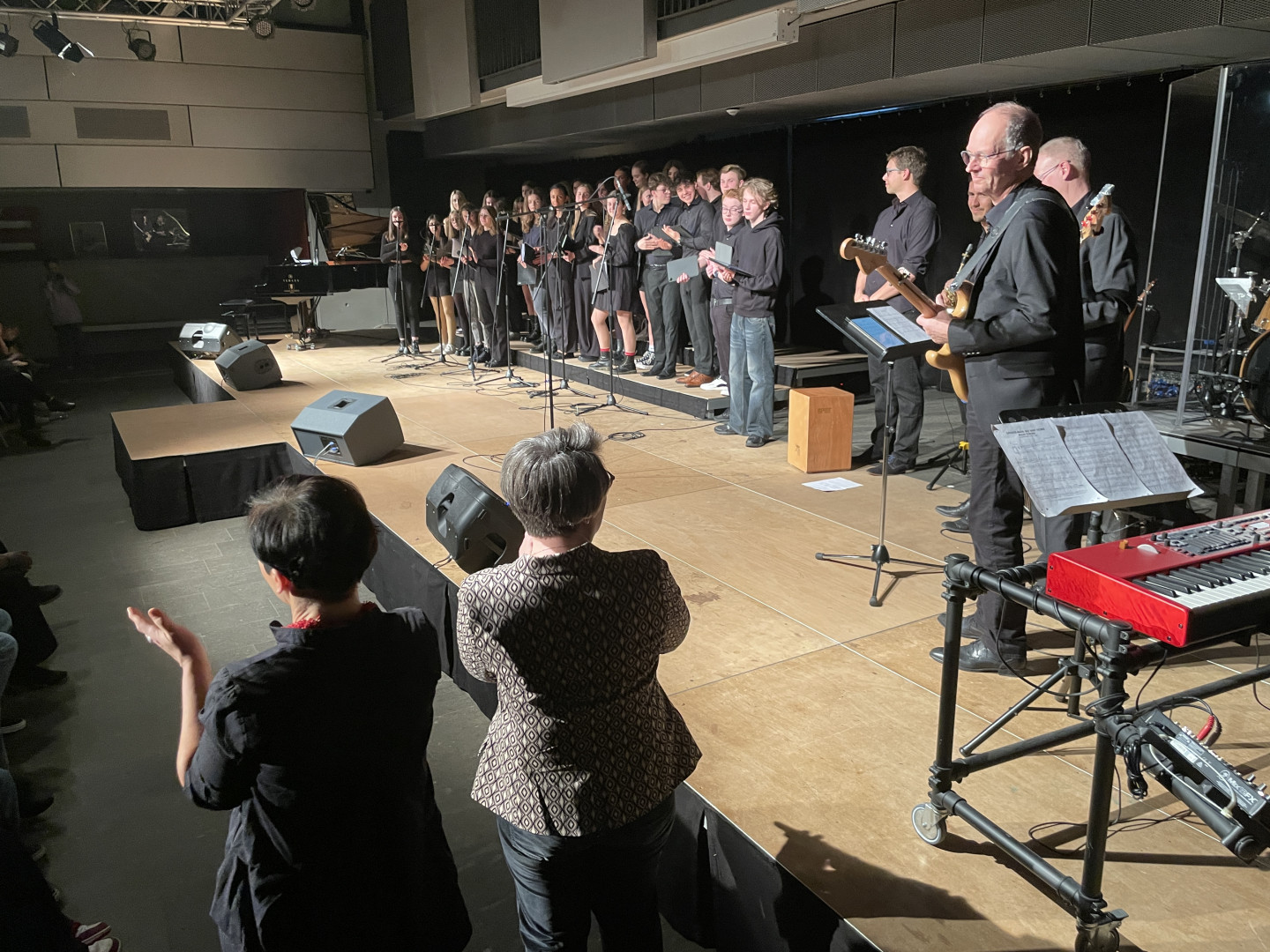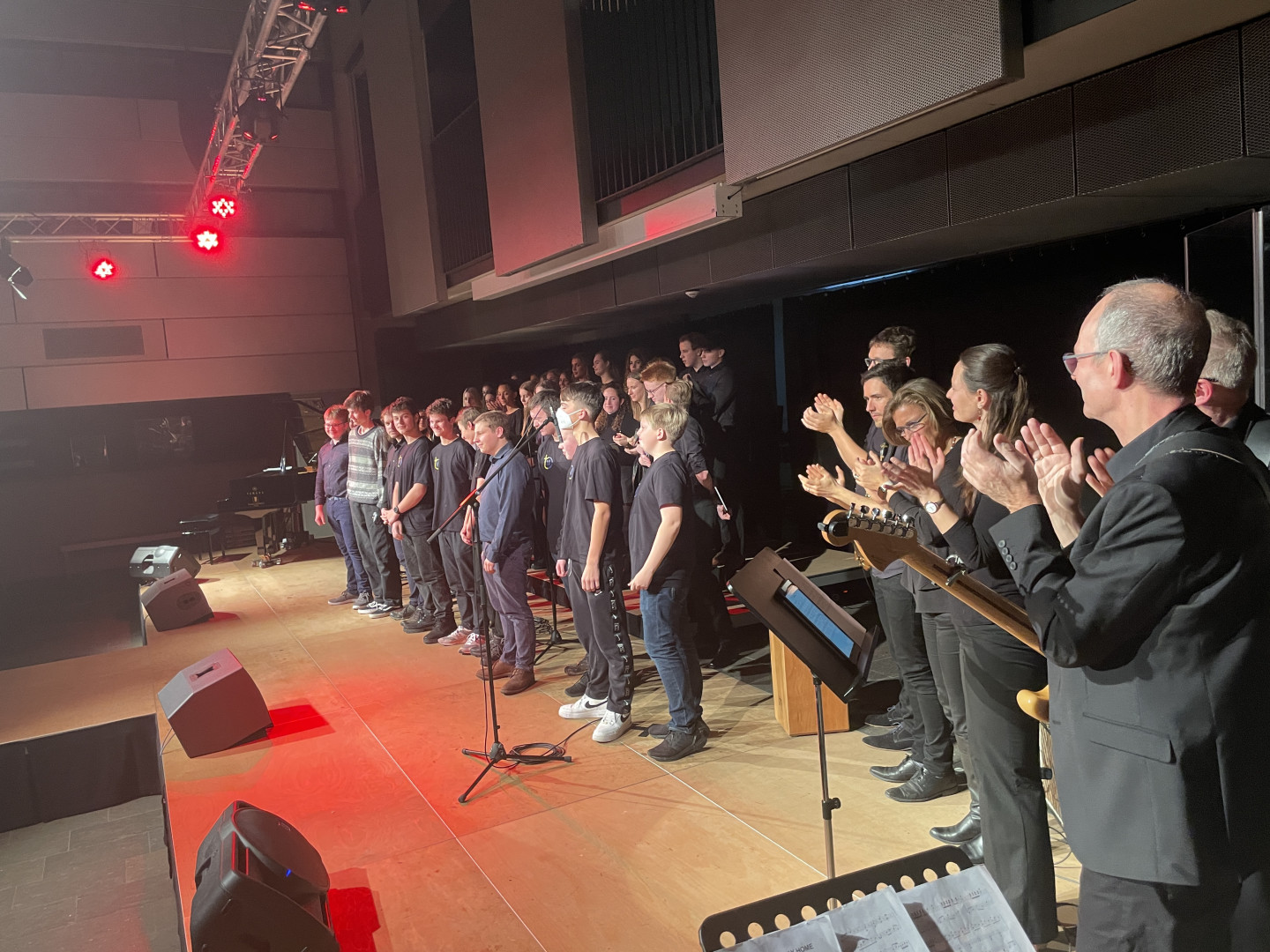 Es waren zwei grandiose Konzertabende, die unsere Ensembles unter der Leitung der Musikfachschaft veranstalteten. Dabei riefen unsere Schülerinnen und Schüler nicht nur musikalisch auf der Bühne an beiden Abenden Glanzleistungen ab, auch der Bühnenauf- und Bühnenabbau sowie die Ton- und Lichtgestaltung lag in den kompetenten Schülerhänden unserer Technik-AG.