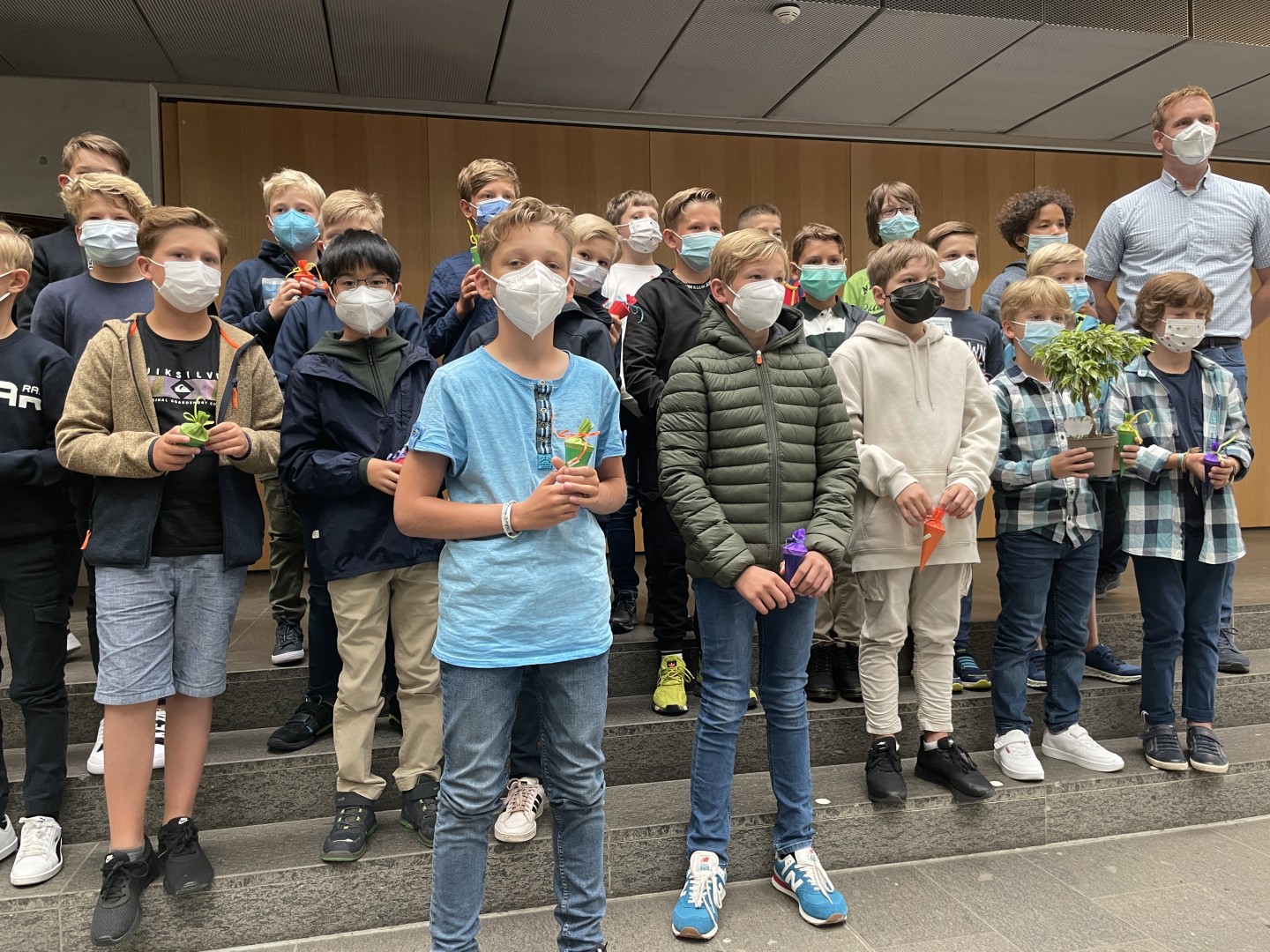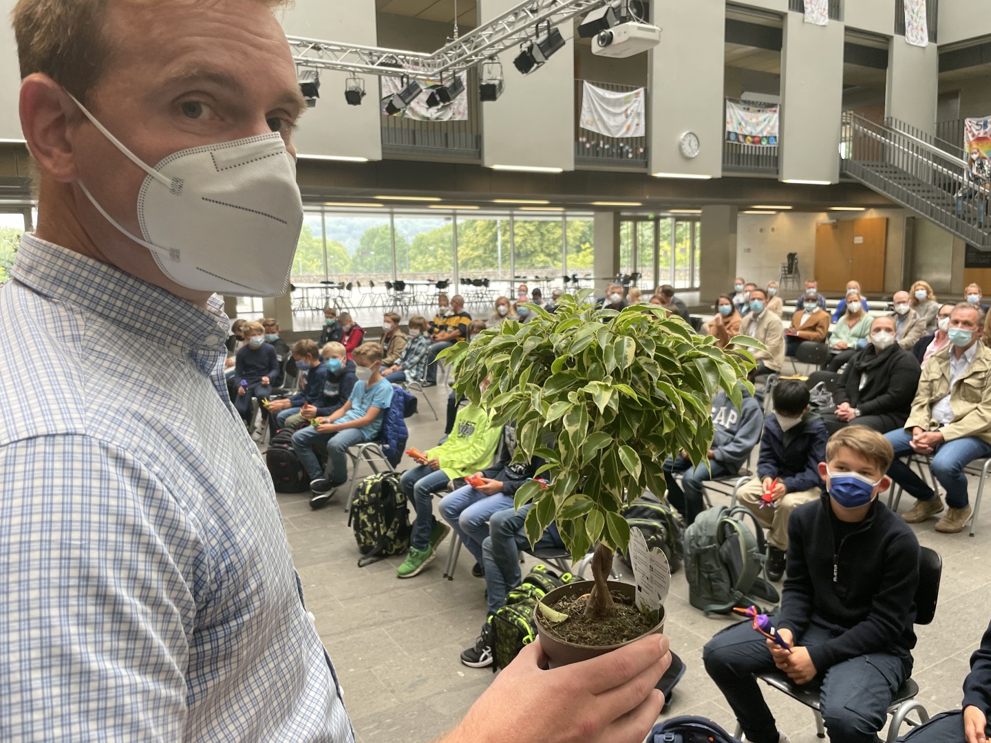 Ganz besonders begrüßen wir die Schülerinnen und Schüler der neuen fünften Klassen, die heute in einer kleinen Einschulungsfeier willkommen geheißen wurden. Dabei bekam jede Klasse einen kleinen Olivenbaum, der zum Zeichen einer gesegneten Schulzeit in den Klassen aufbewahrt werden soll.