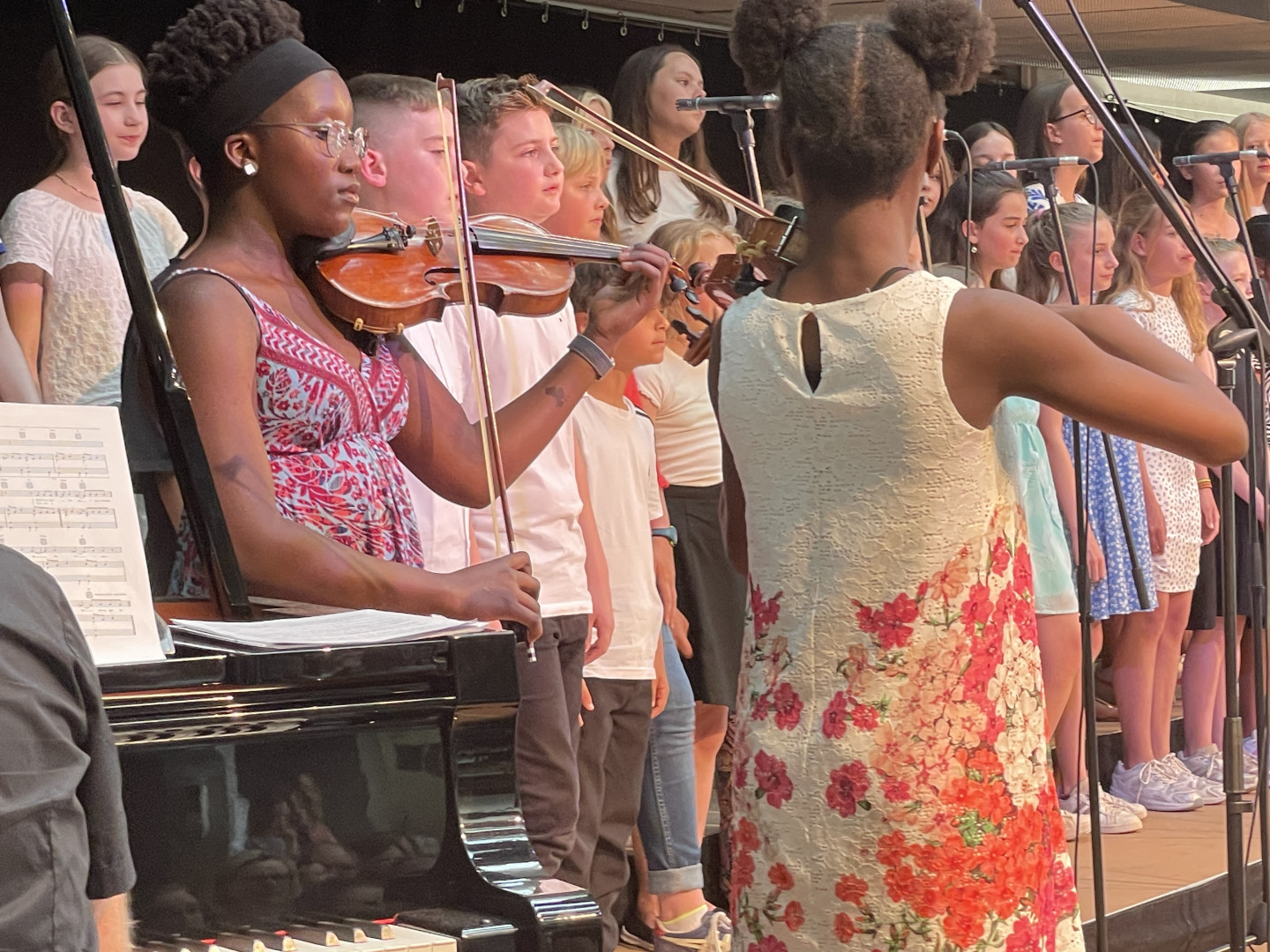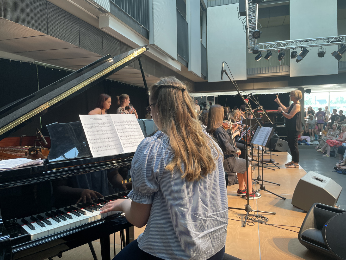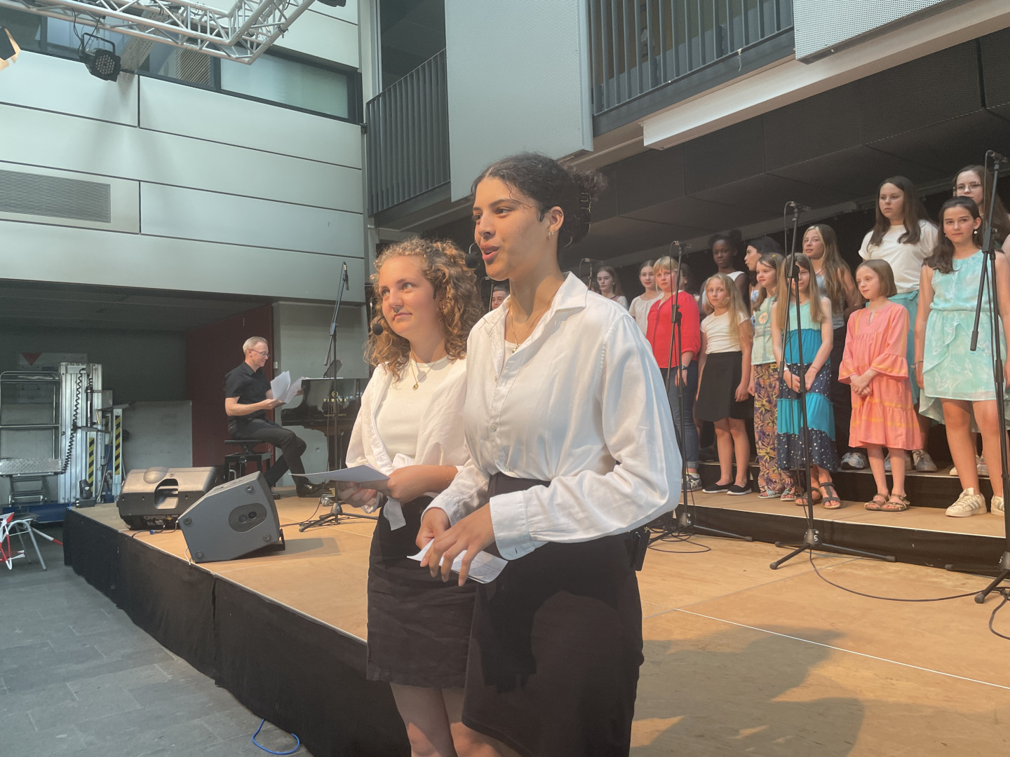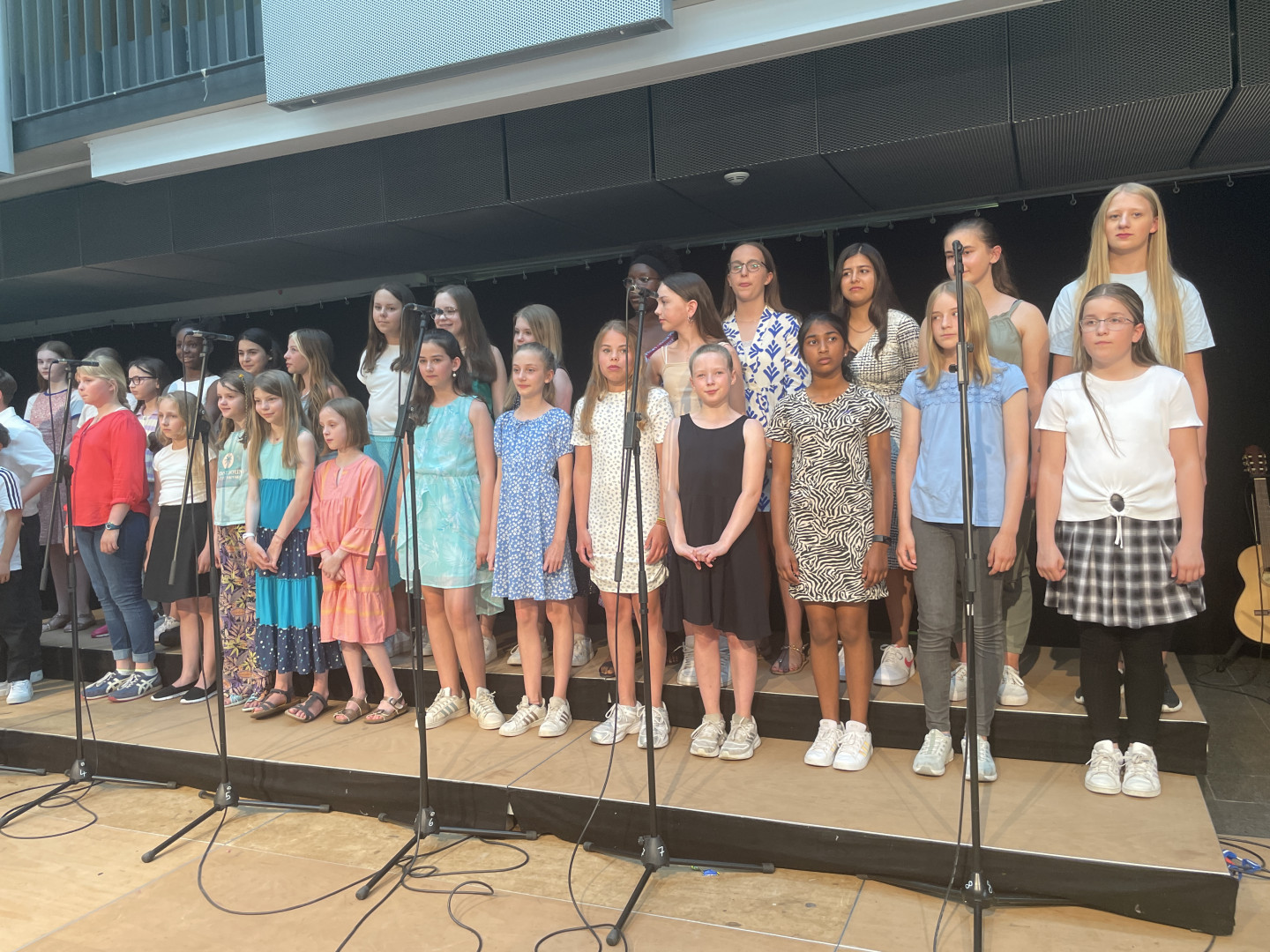 Die Sommerkonzerte in diesem Jahr begannen pünktlich um 19 Uhr jeweils mit einer kurzen Eröffnung der beiden souveränen Moderatorinnen Elisa und Maria aus der Q1, bevor dann zunächst der Unterstufenchor auf die Bühne kam. Das erste Lied, das der Chor unter der Leitung von Herrn Wolinski performte, war „Celestial” von Ed Sheeran. Danach sangen die Schülerinnen und Schüler aus den Stufen 5 - 7 noch den Song „Lift me up” von Rihanna sowie „Bitter sweet symphony” von der britischen Band The Verve. Im Anschluss spielte Felix Kotzwander aus der 8d zusammen mit seinem Partner Tjark Schulte mit ihren Saxophonen zwei Stücke, die sie bereits sehr erfolgreich bei dem Wettbewerb „Jugend musiziert" präsentierenden. Vor der Pause folgte das Orchester unter der Leitung von Frau Galemann, welches unter anderem ds Dart-Vader-Thema aus den Star-Wars-Filmen aufführte. Nach der 15-minütigen Pause, in der die Stufe Q1 Getränke und kleine Speisen verkauften, sang der Oberstufenchor unter der Leitung von Herrn G. Lepping des Coldplay-Klassiker „Viva la vida” sowie das italienisches Lied „Insieme" von Toto Cutugno, das bereits an dem Benefizabend für das Kinderhilfswerk „Stil I Rise" gesungen wurde. Danach folgte der Auftritt der BigBand unter der Leitung von Herrn Wickel. Diese spielten zwei Stücke mit Soloauftritten. Vor dem letzten Lied dankten Frau Dr. Schmidt und Frau Richtscheid allen MusiklehrerInnen, MusikerInnen, TänzerInnen und SängerInnen sowie der Technik-AG. Das große Highlight war das Lied “Never Gonna Not Dance Again”, welches der Oberstufenchor, der Unterstufenchor und die BigBand gemeinsam spielten. Die Tänzerinnen sowie die Inlinskaterinnen rundeten alles perfekt ab. Es war wie jedes Mal ein wunderbarer Abend.