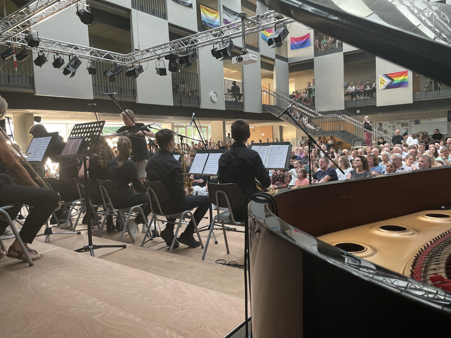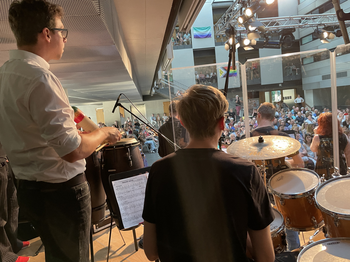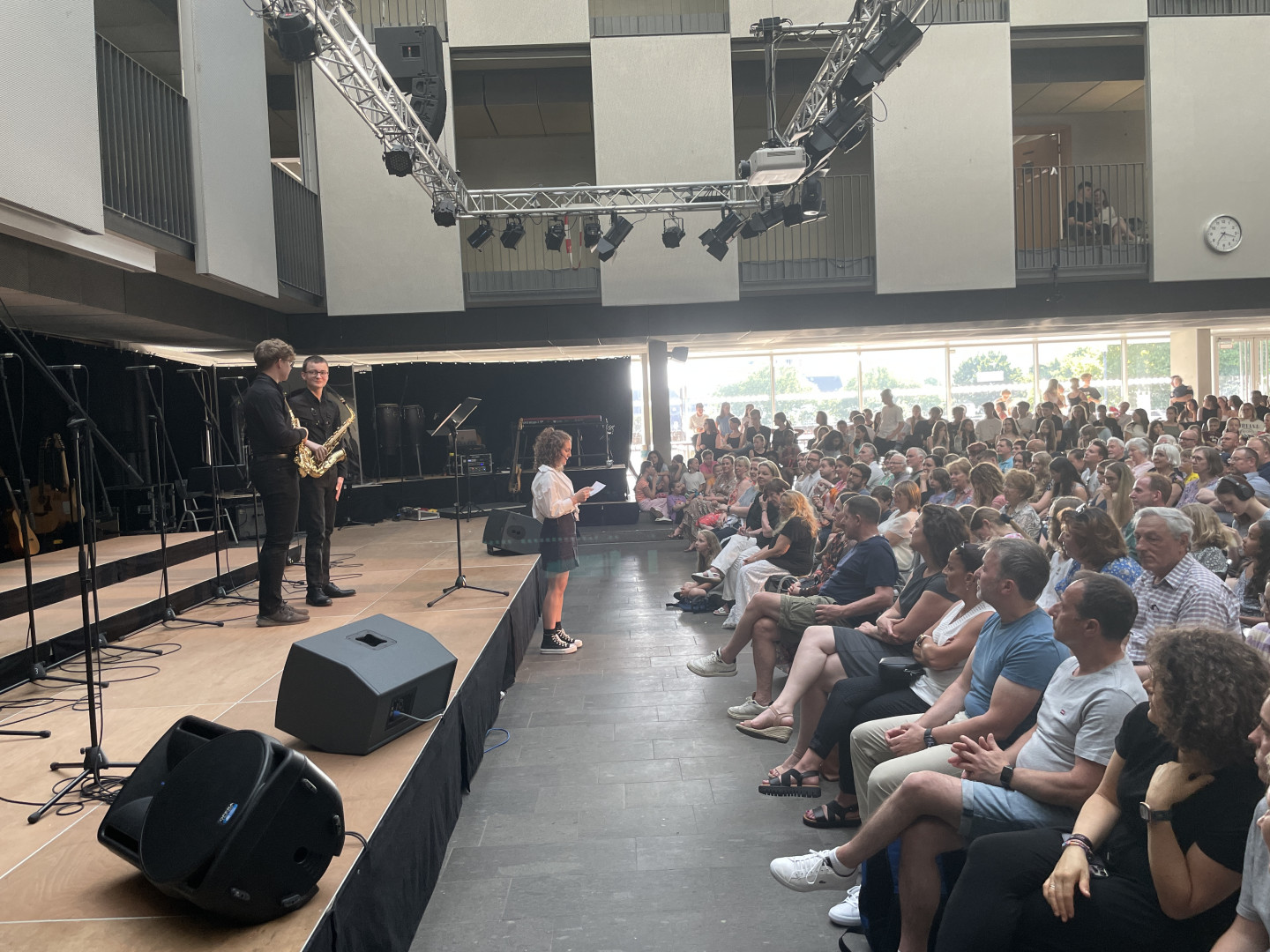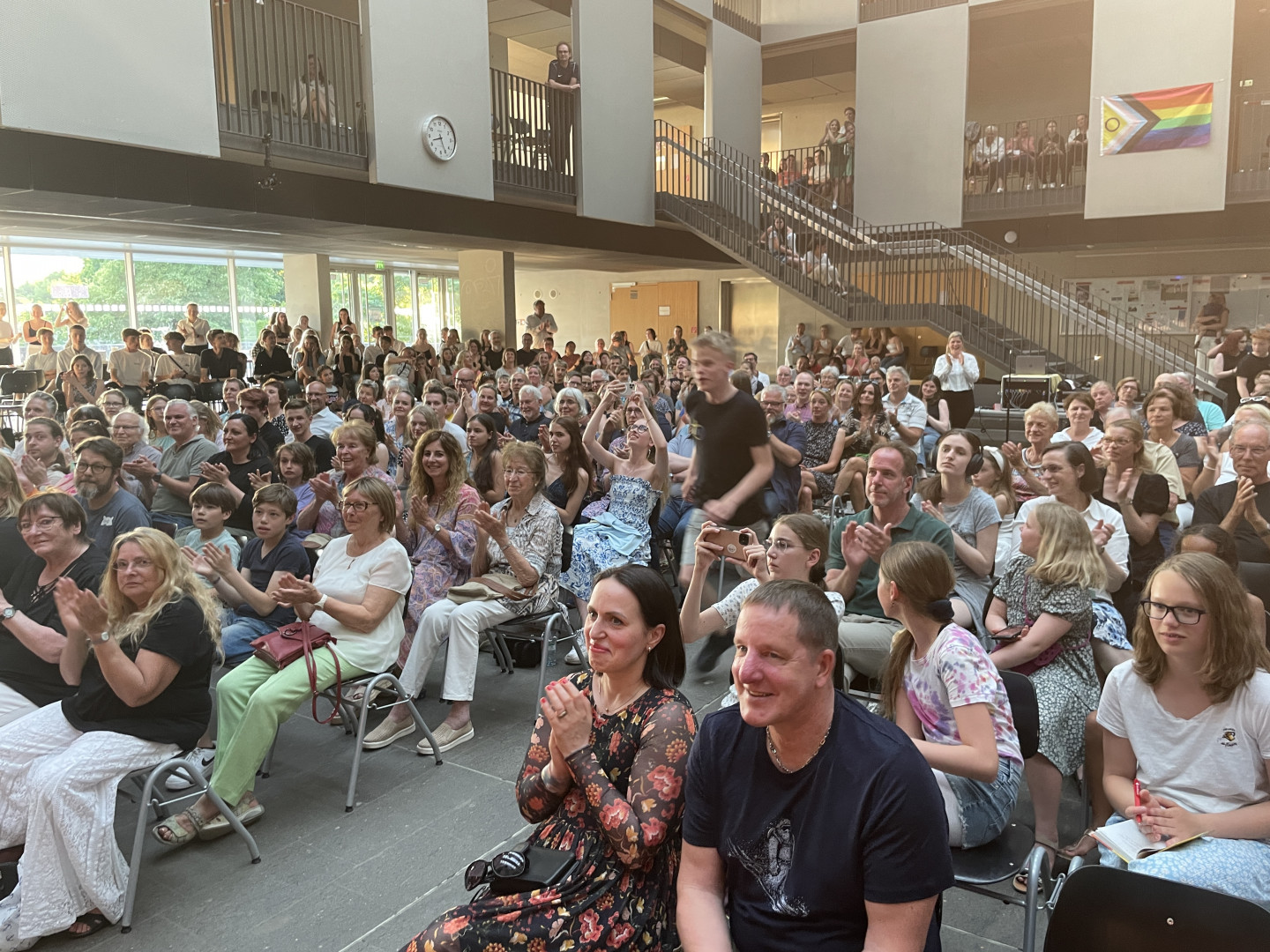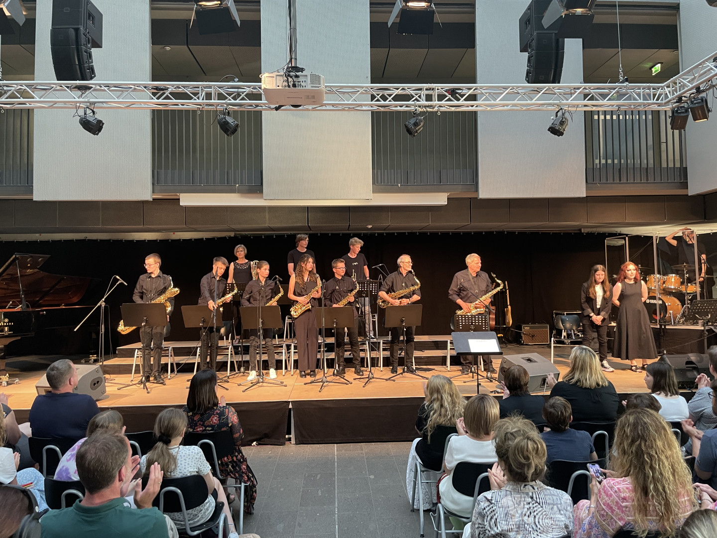 An beiden Abenden belohnte das Publikum im jeweils vollbesetzten Forum die Darbietungen unserer Schülerinnen und Schüler mit großem Jubel und Beifall. Und zwar zu Recht. Erneut fand die Mischung aus Pop, Klassik und Bigband-Sound großes Gefallen, und man merkte die Spielfreude und den Spaß am Musizieren den vielen Schülerinnen und Schülern auf der Bühne deutlich an.
