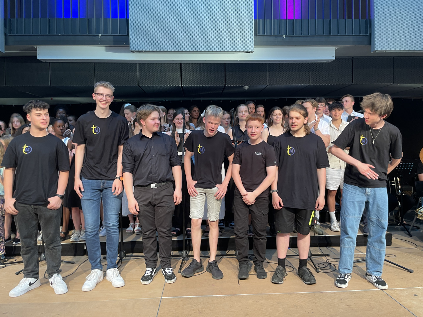 Wie es aus Isis Bericht bereits hervorgeht, können solch grandiose Konzertabende nur gelingen, wenn viele talentierte und aktive Schülerinnen und Schüler die Angebote unserer Musikfachschaft annehmen und auch den Mut haben, auf der Bühne ihr Können zu präsentieren. Wir werben an dieser Stelle ausdrücklich für unsere Chöre, das Orchester, die Bigband sowie die Technik-AG. Kommt dazu und macht mit. Es lohnt sich.