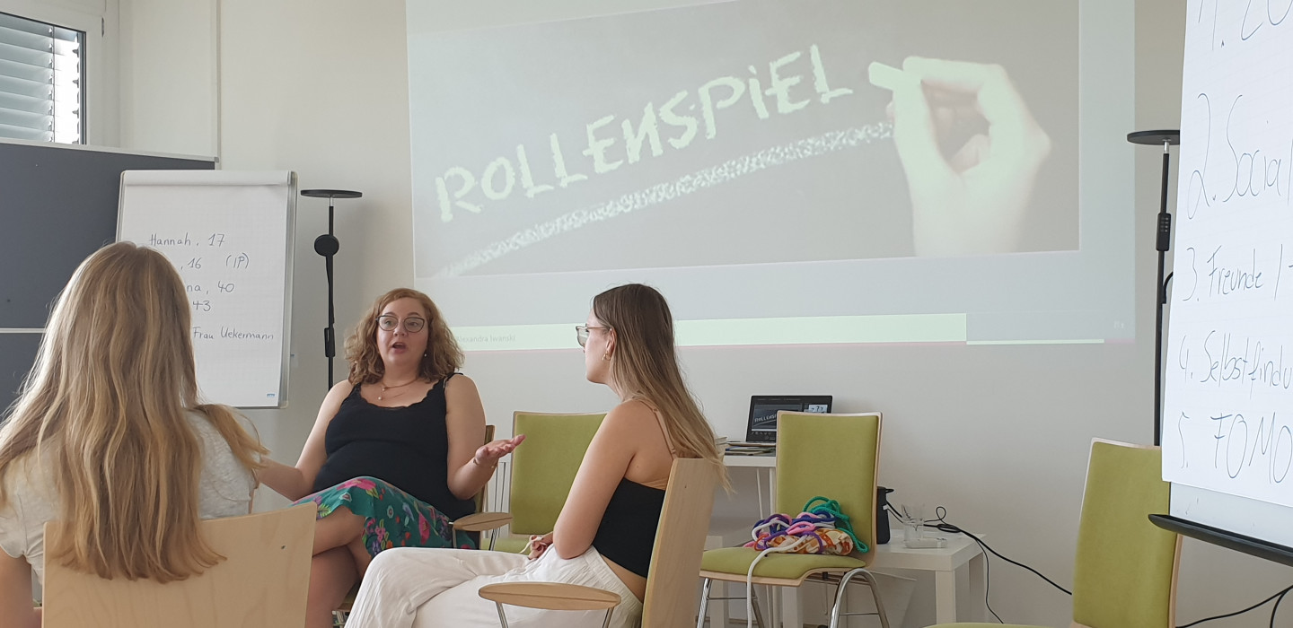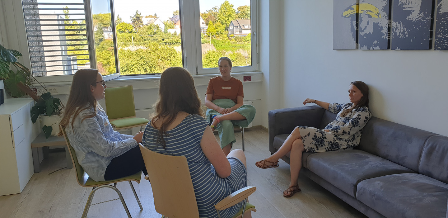 Frau Sulimmas Leistungskurs besuchte vor diesem Hintergrund das ifs im Rahmen der Ausbildung von Kinder- und JugendlichenpsychotherapeutInnen im Vertiefungsgebiet Systemische Therapie. In jedem Ausbildungskurs wird u.a. das Seminar „Beziehungsgestaltung mit Jugendlichen“ gegeben. Dazu waren unsere SchülerInnen eingeladen, damit die AusbildungskandidatInnen, die ja in ihrem Alltag meist nur mit psychisch auffälligen Jugendlichen zu tun haben, die Chance bekamen, sich mit „durchschnittlichen“ Jugendlichen über relevante Themen der aktuellen Jugendphase auszutauschen. Ziel war es, in Kleingruppen kurze Rollenspiele durchzuführen, in denen z.B. ein kurzer Teil eines „Erstgesprächs einer Therapiesitzung“ mit ausgedachtem „Anliegen“ gespielt wurden und die TherapeutInnen dann von den Jugendlichen authentische Rückmeldungen erhielten, wie sie auf die Jugendlichen gewirkt haben, wie methodische Vorgehensweisen beurteilt wurden etc. Dieser Austausch wurde auch in diesem Jahr für beide Seiten als unglaublich sinnstiftend reflektiert. Im Gegenzug wird uns das ifs dann innerhalb der zugehörigen Unterrichtsreihe Systemtherapie am Ende des Schuljahres an der Schule besuchen, um die theoretisch erlernte Methodik mit der therapeutischen Praxiserfahrung abzugleichen.