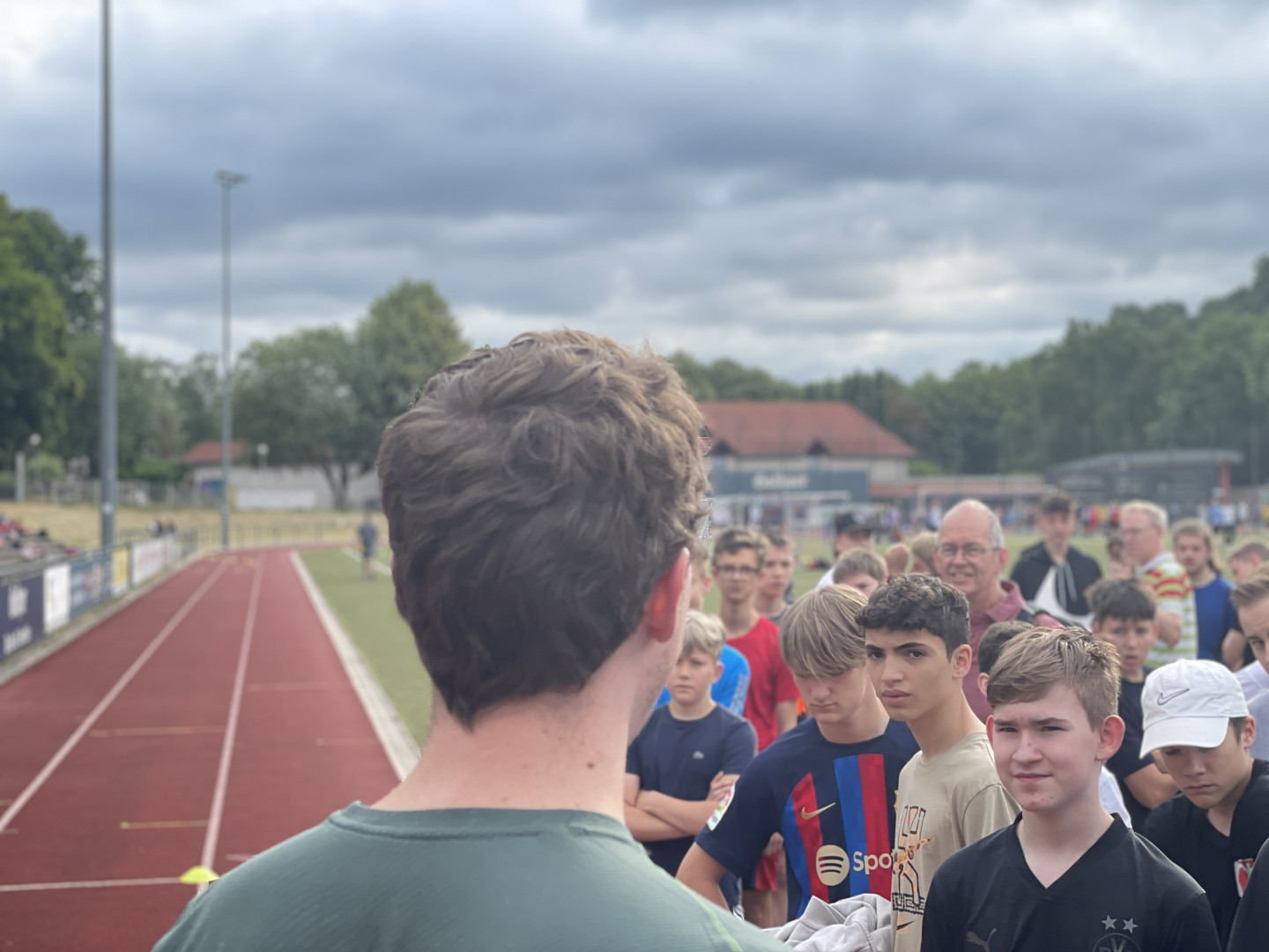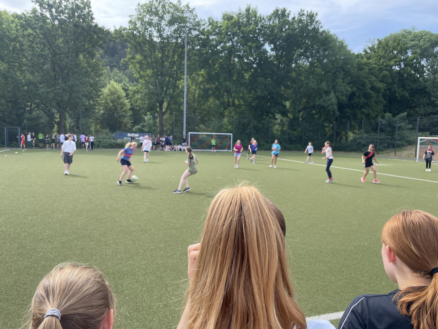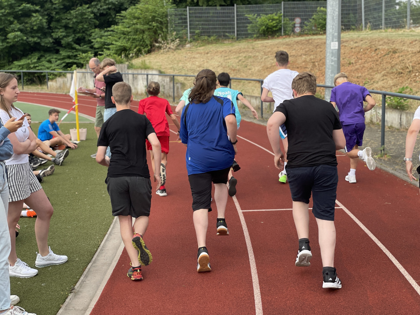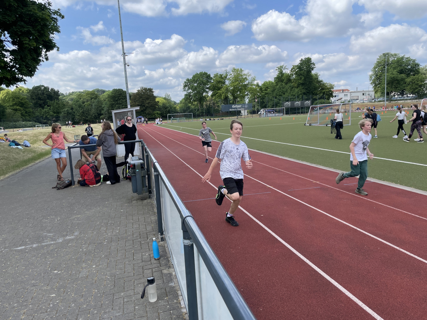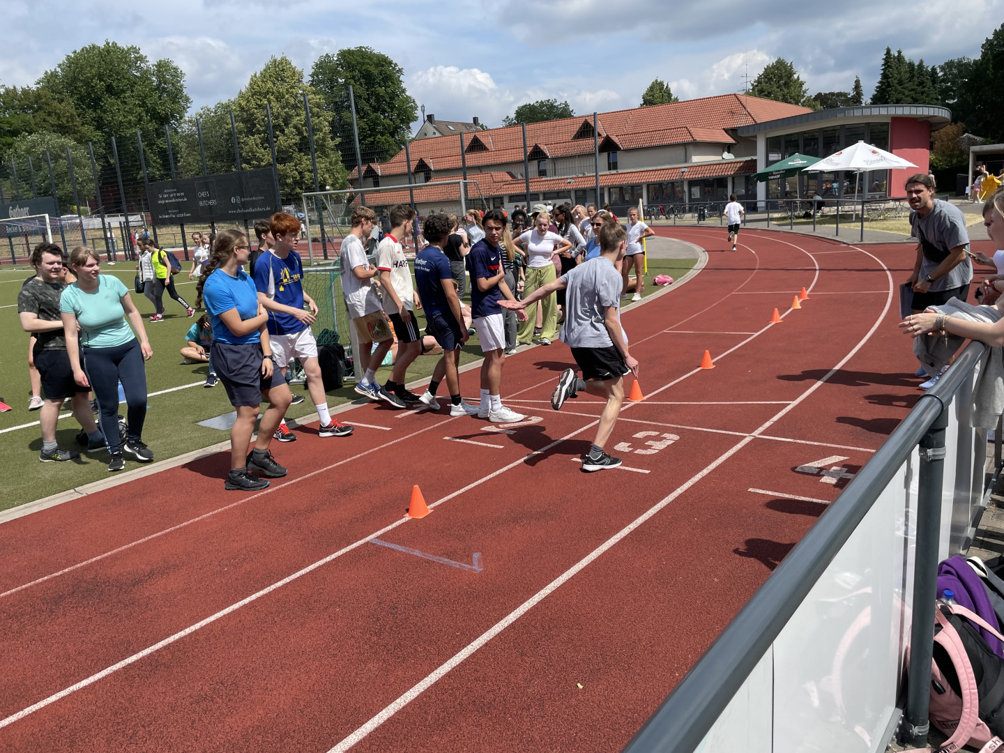 Am 19. Juni 2023 fand endlich wieder unserer jährliches Sportfest statt. Da dies die letzten drei Jahre ausgefallen ist, konnte man schnell den Eindruck gewinnen, dass die Sportfachschaft mal wieder „alles rausgeholt" hat, denn die Schülerinnen und Schüler konnten in insgesamt 7 Disziplinen herausgefordert werden wie etwa im Weitsprung, im Standweitsprung, im Weitwurf und im Kugelstoßen, in den Laufdisziplinen 800m und Sprint sowie im Seilspringen.