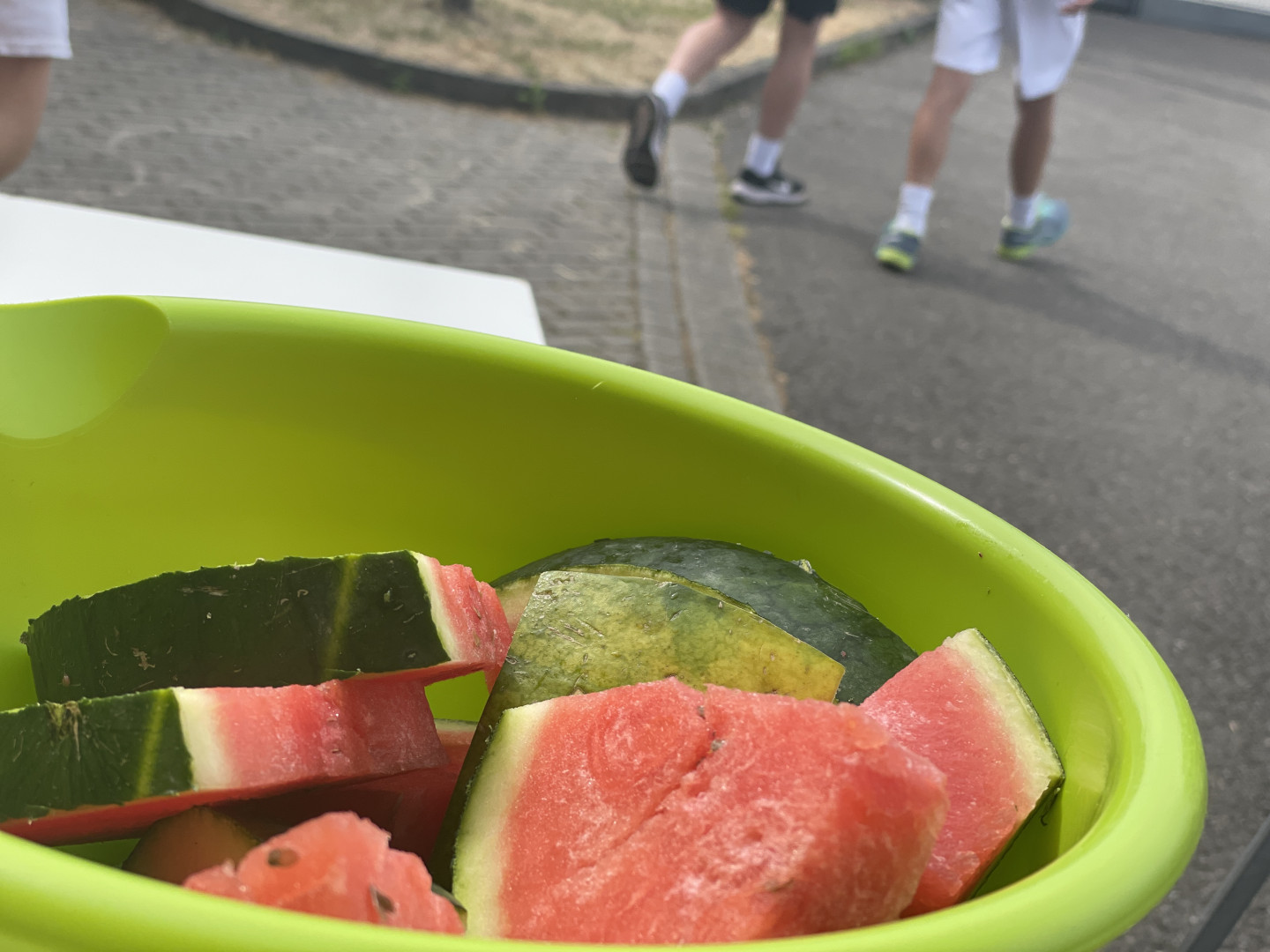 Zusätzlich hat die Stufe Q1 für ihre Abiturkasse leckere Snacks und kalte Getränke angeboten, die bei den schwül-warmen Temperaturen großen Absatz fanden.