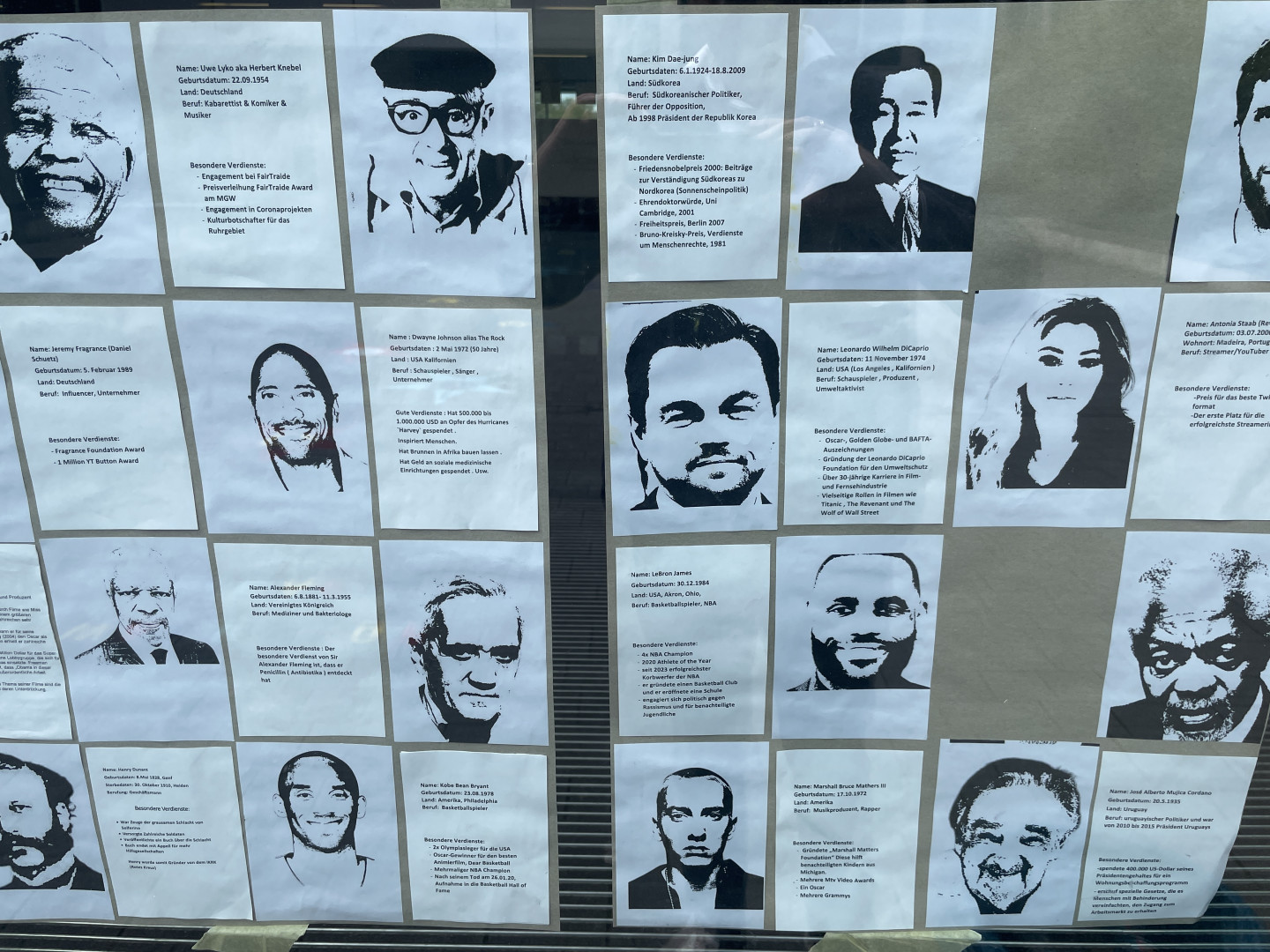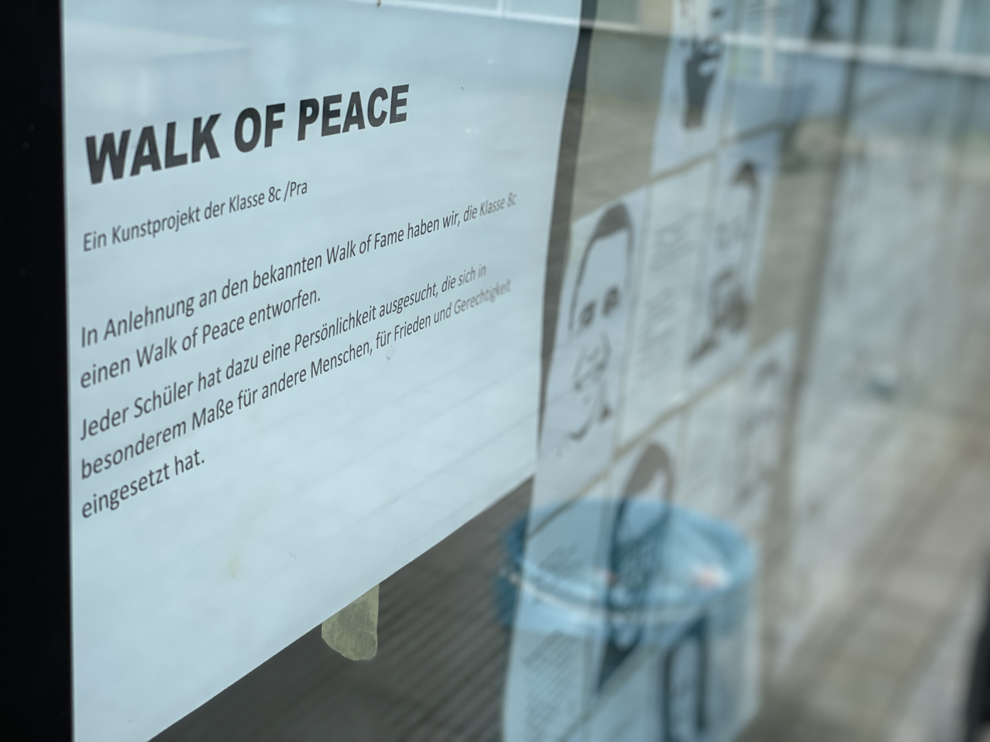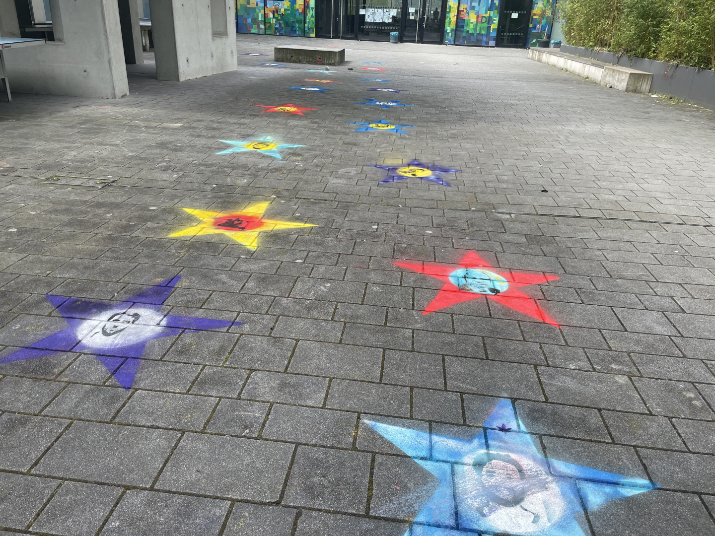 So kam die Idee auf, in Zeiten wie diesen ein positives Zeichen zu setzen. In Anlehnung an den Walk of Fame in L.A haben die Schüler jeweils eine Person ausgesucht, die sich ihrer Meinung nach besonders für Frieden und Gerechtigkeit eingesetzt hat. Die Porträts dieser Menschen wurden dann als Stencil umgesetzt und in die Sterne gesprüht.